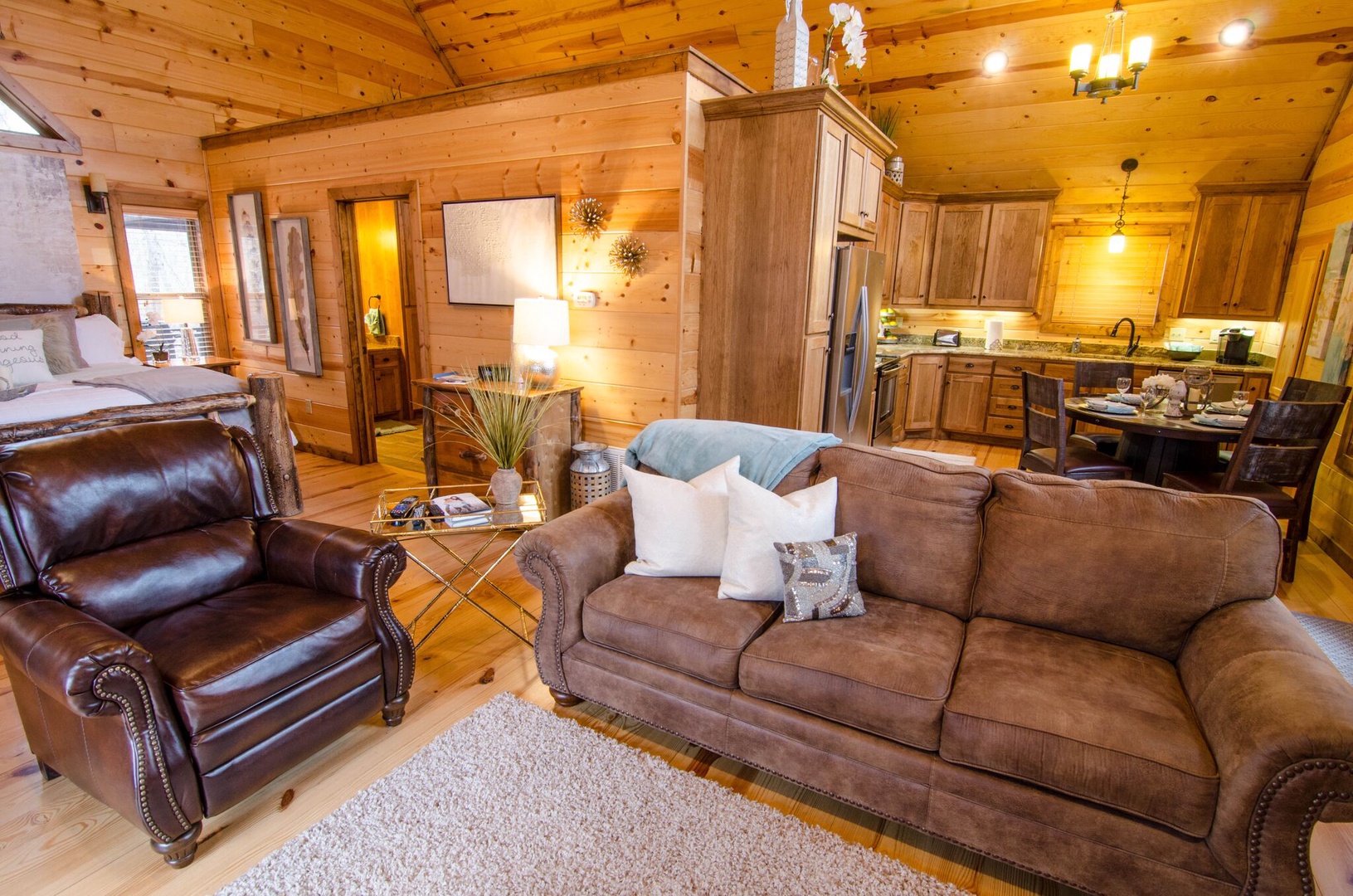 sleeper sofa and recliner to bask in front of the roaring fire.