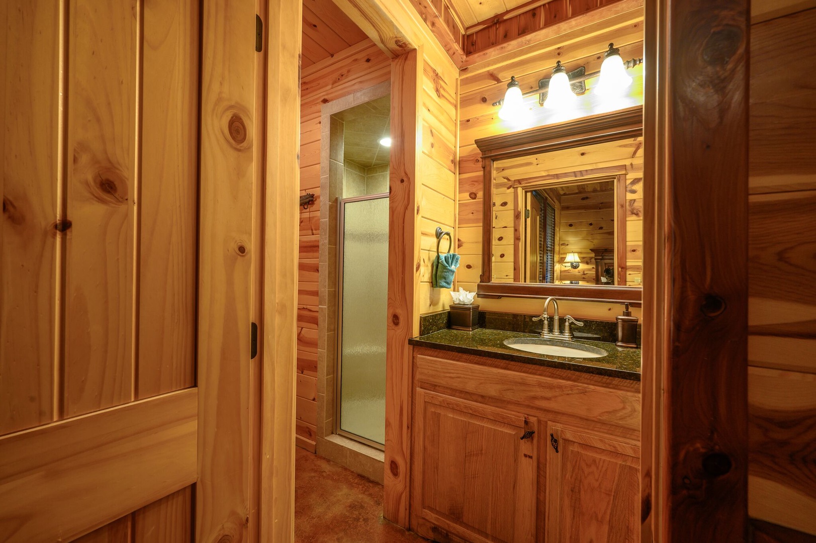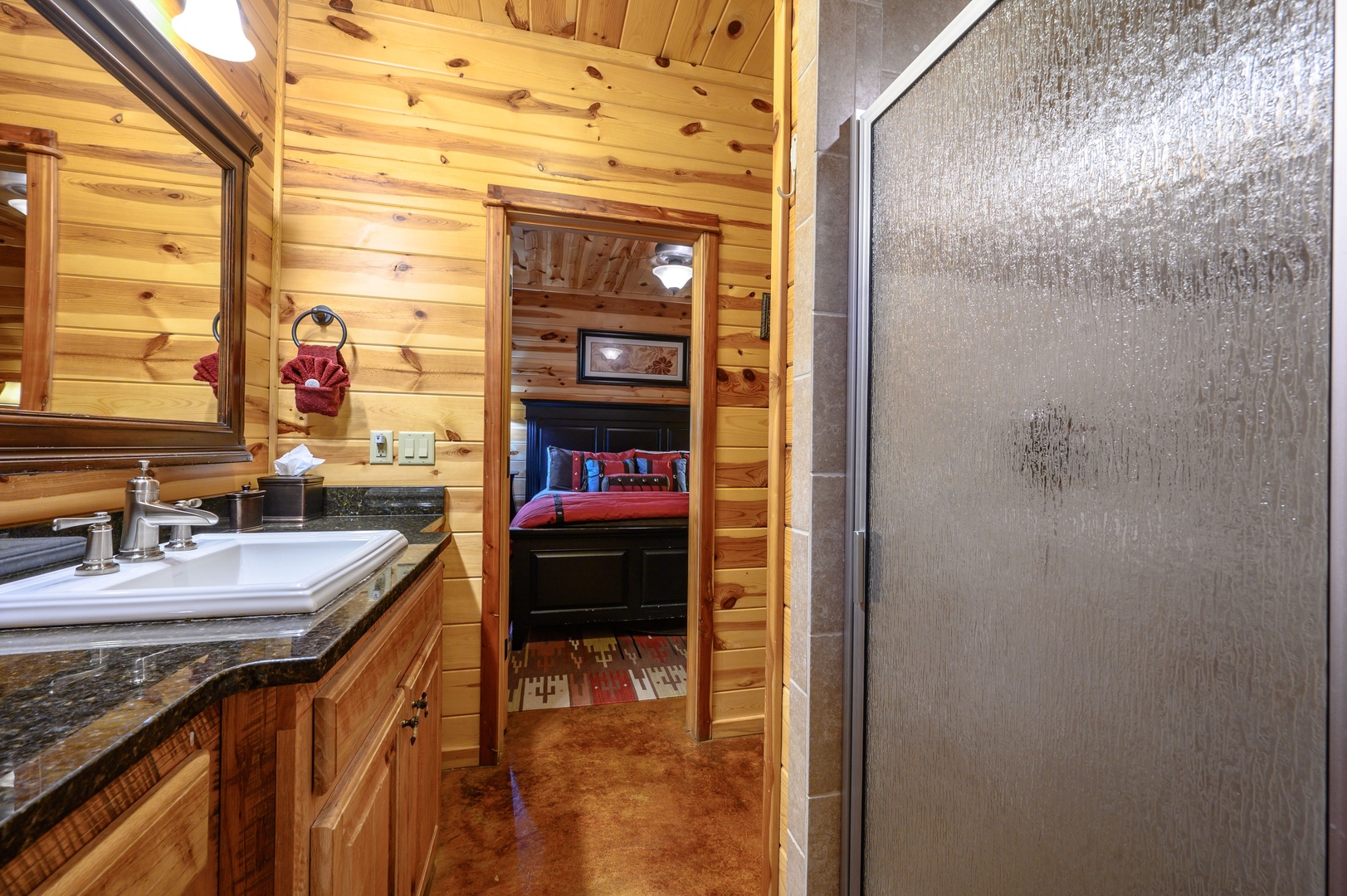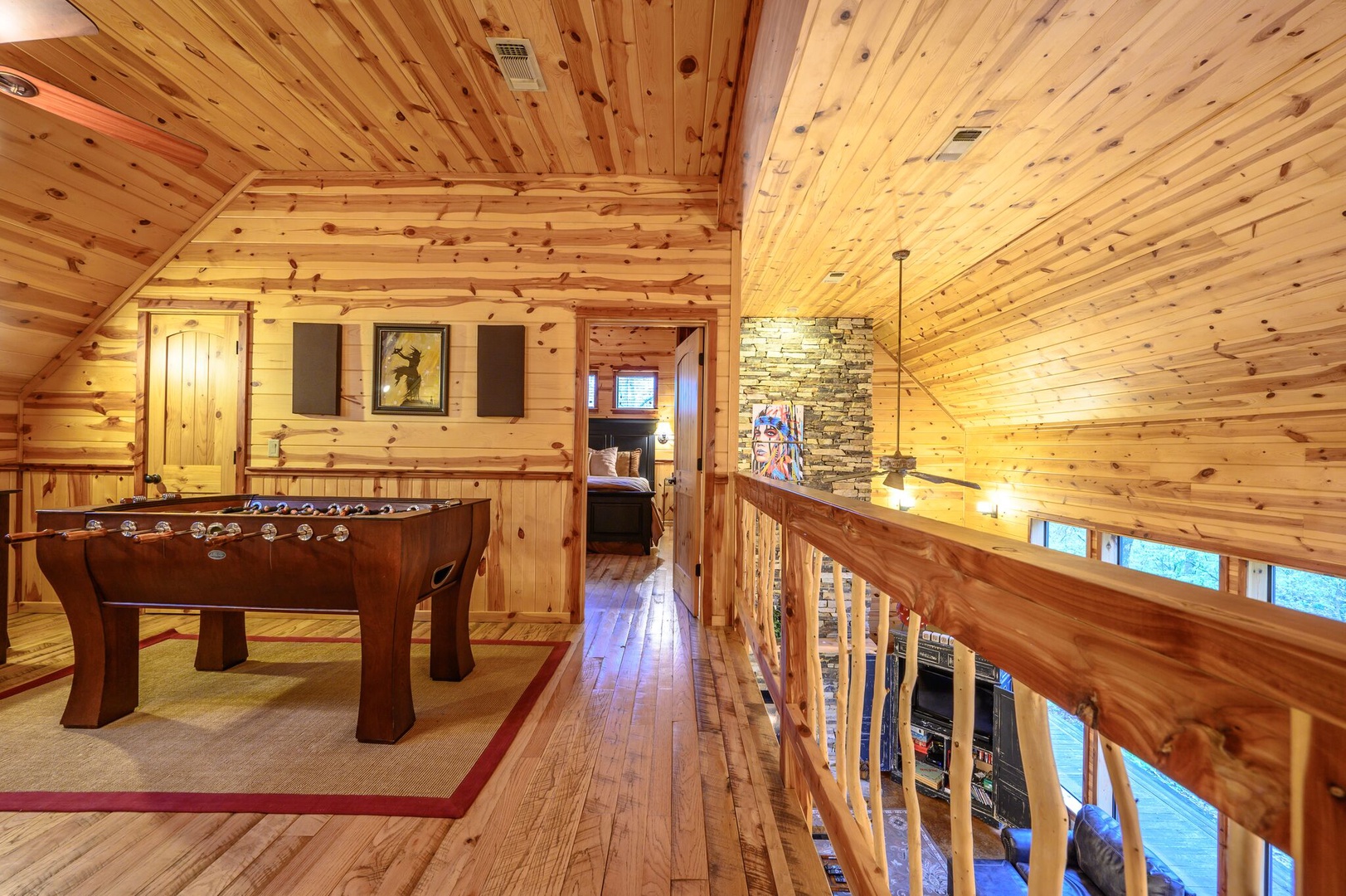There are two downstairs Master Bedrooms, each with their own King Bed, luxury linens, and private bathrooms that offer custom tiled walk-in showers. The large upstairs bedroom has a King bed, one twin bed, LCD TV/DVD, and a large full size bath that is shared with the game room. The upstairs game room has a foosball table, game table for four, and 2 twin beds. Downstairs there is a laundry room with full size washer and dryer.