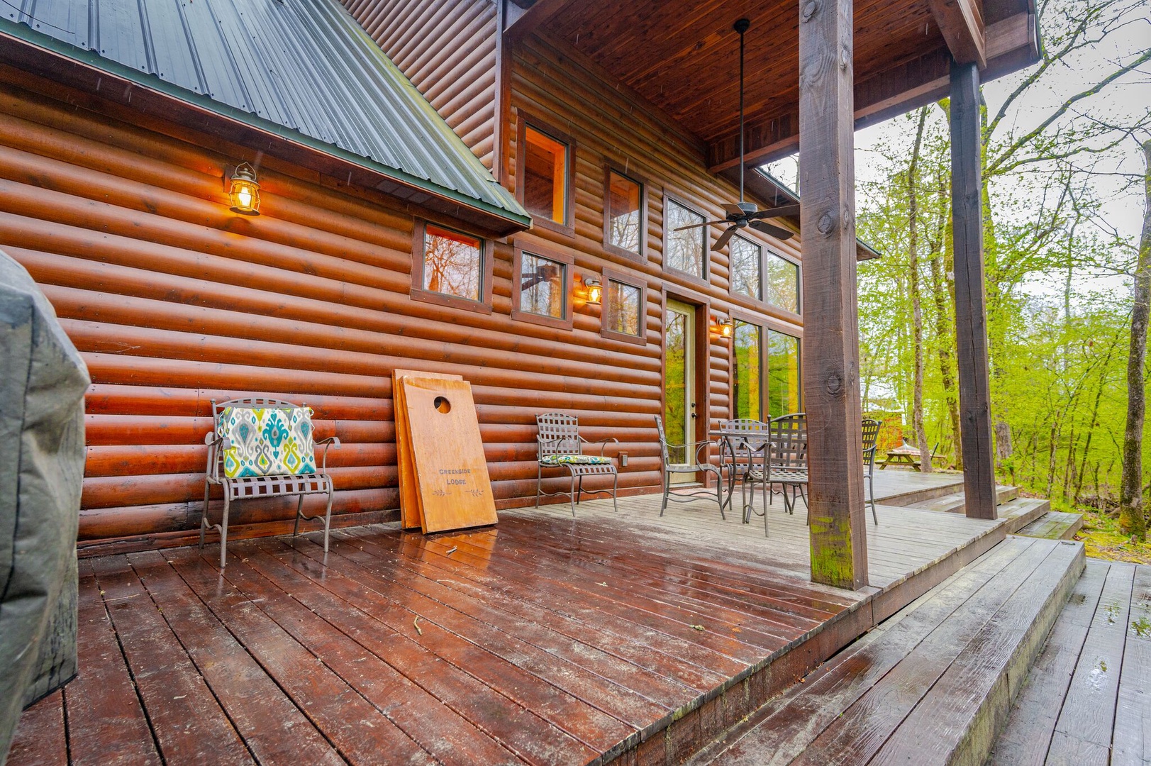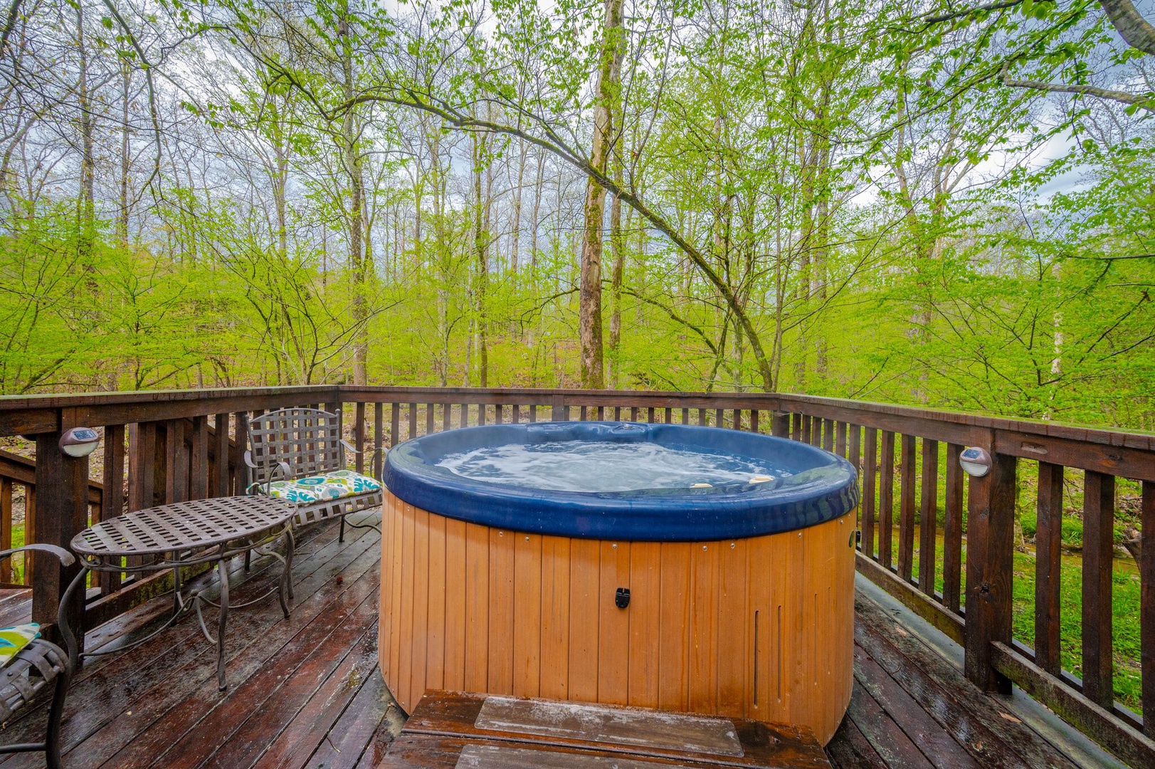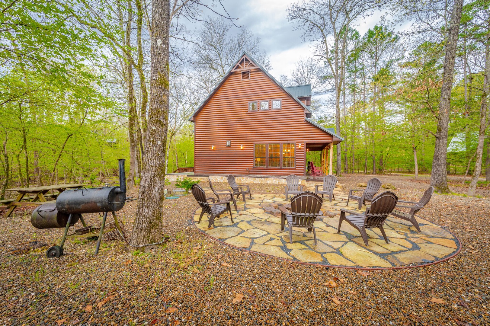 Creekside Lodge is located in Timber Creek Trails. Two miles north of Hochatown, in the Ouachita National Forest, you are just minutes from the Stevens Gap Marina, Cedar Creek Golf Course, excellent fly fishing on the Lower Mountain Fork River and hundreds of miles of forestry logging trails for off-road activity. During the day make memories roaming the beautiful natural forest for 'treasures', or take your shoes off and wade in the cool waters of the spring fed creek. For night time enjoyment, don't forget the marshmallows for roasting s'mores by the campfire, and your bathing suit so you can spend time relaxing in the hot tub overlooking the creek and the star-filled Oklahoma night sky!