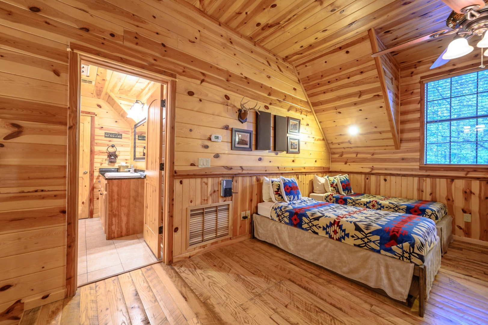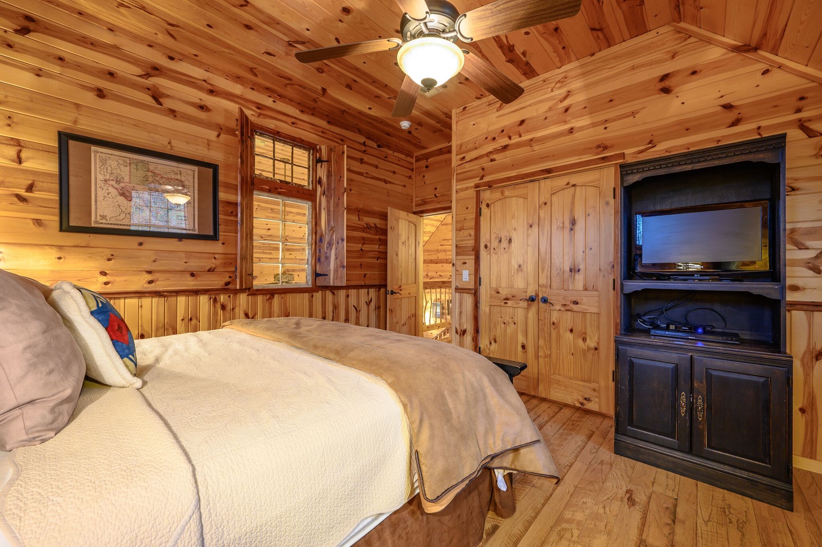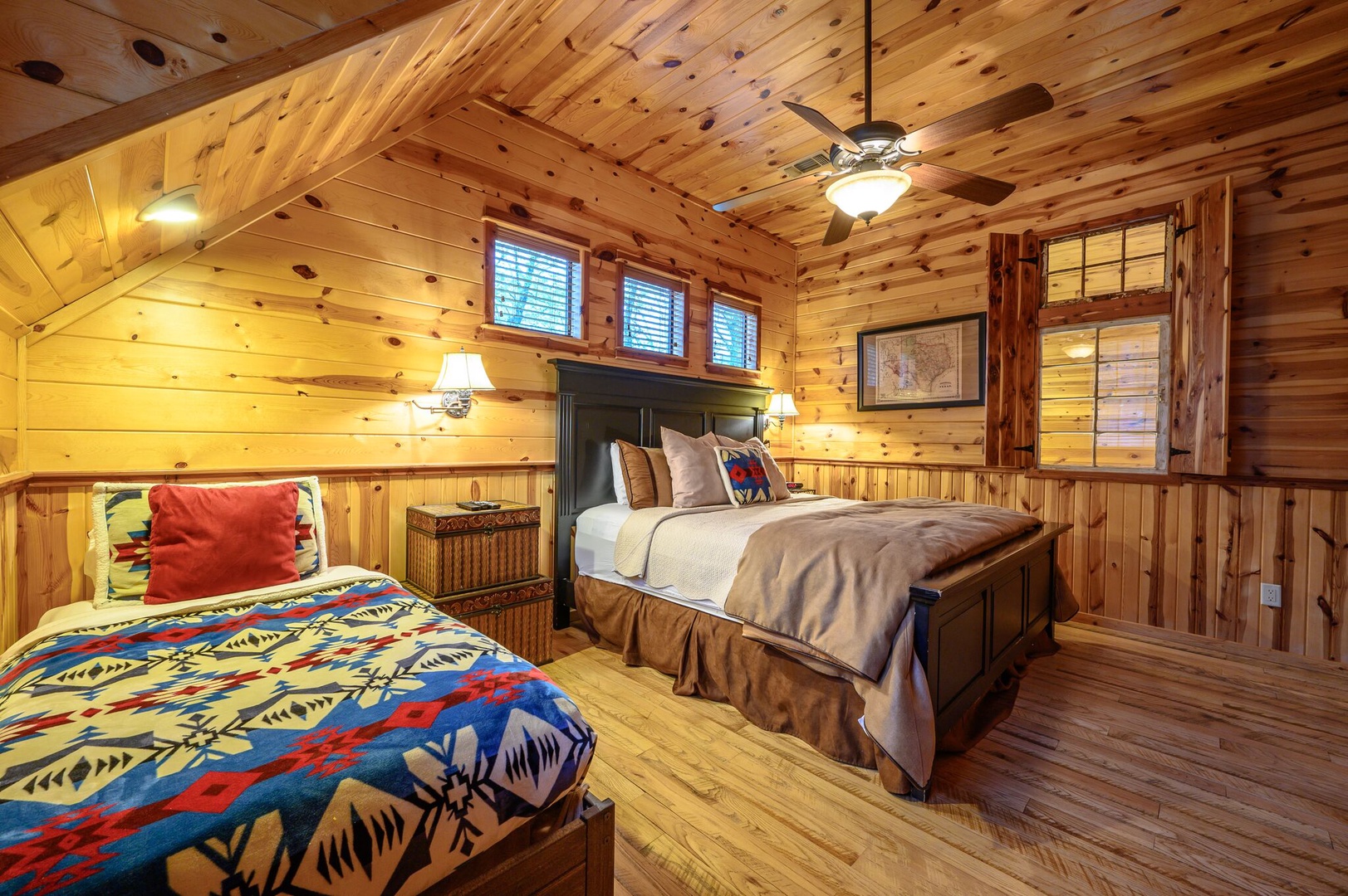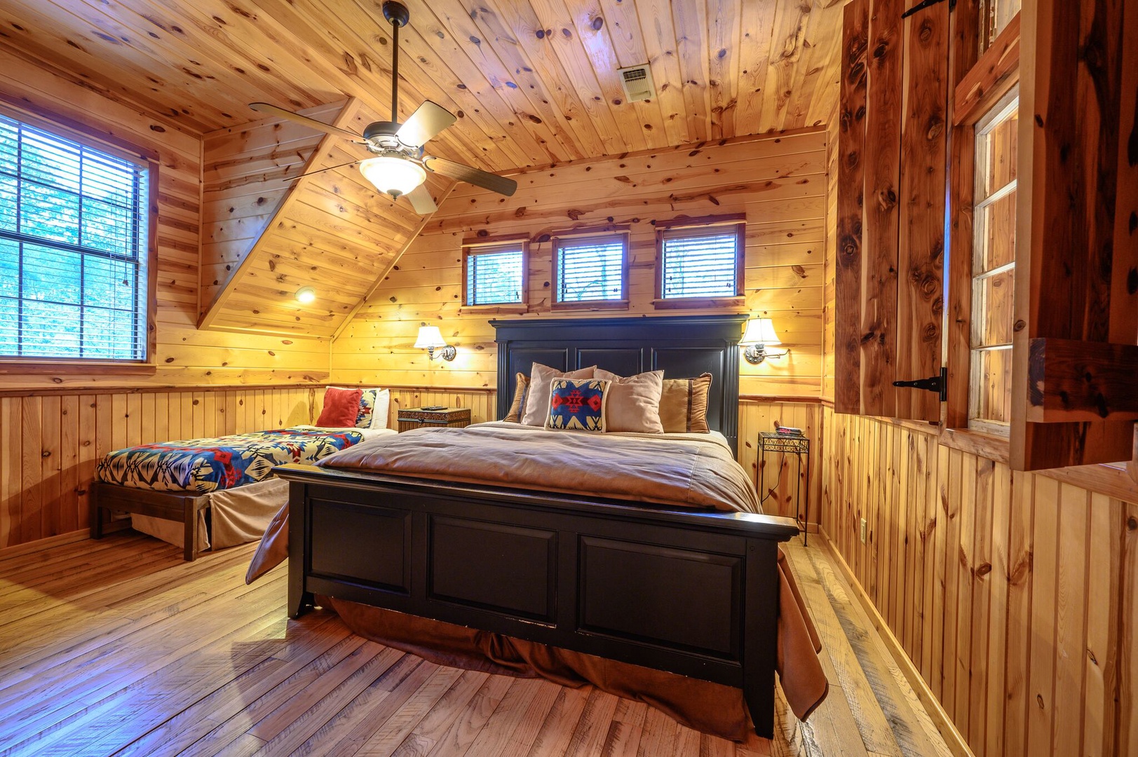 Upstairs: King bedroom, loft space, with a shared bathroom.