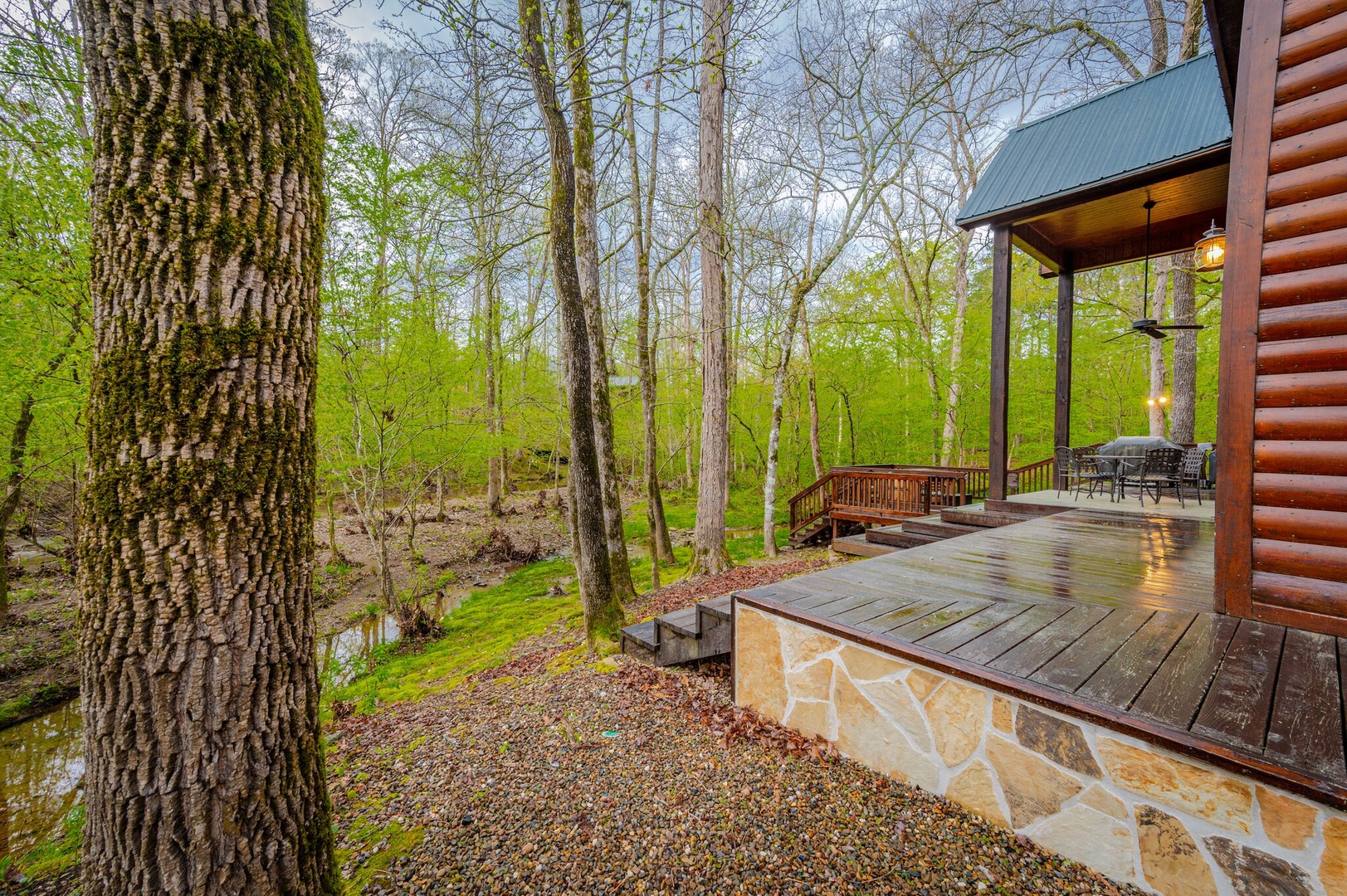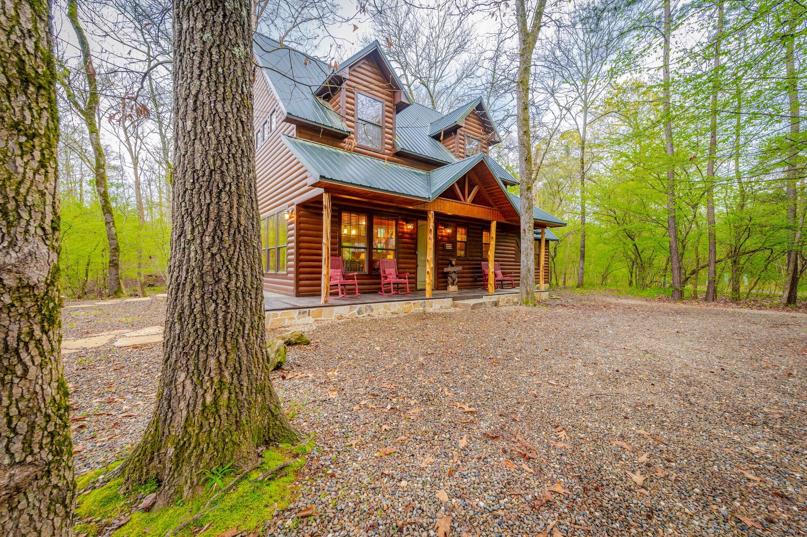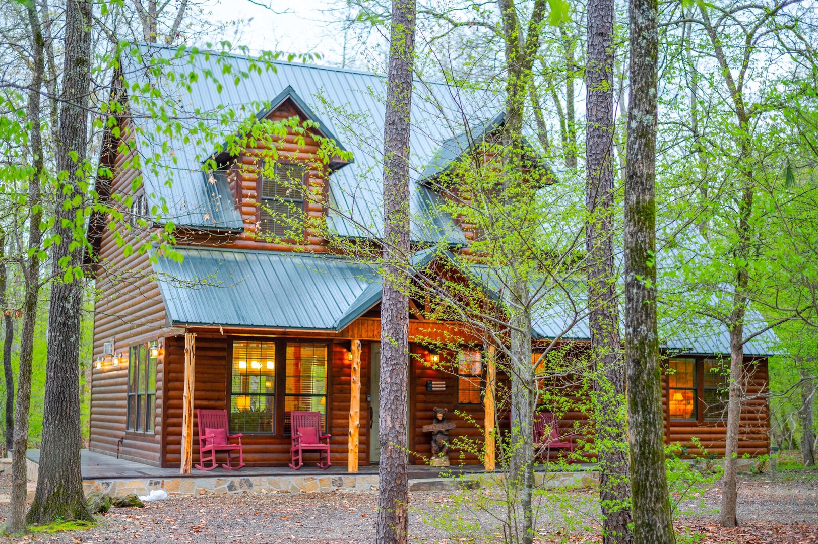 Creekside Lodge is a luxurious vacation home of almost 2,200 sq. ft. nestled in the towering pines of the Ouachita National Forest, including rare Creekside frontage.