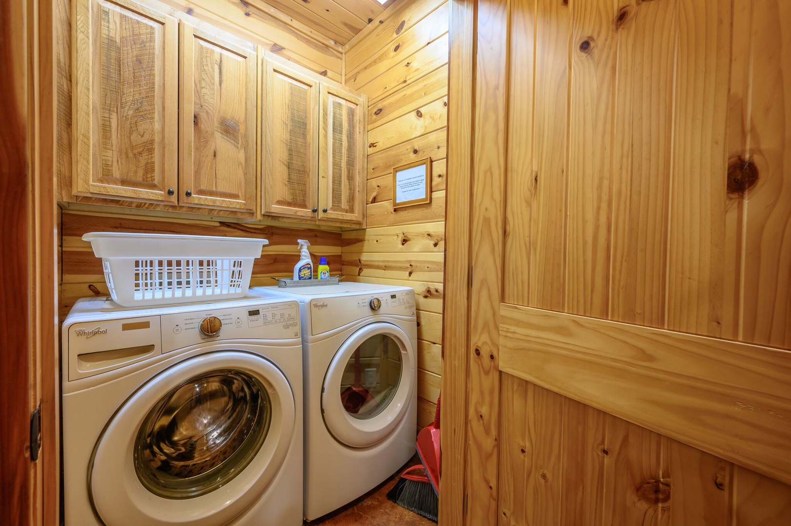 A starter supply of paper towels, toilet paper, bath soap, dish washing liquid, trash bags, dishwasher tablets, laundry soap, coffee filters, and salt & pepper will be provided for your stay. All cabins have fully equipped kitchens, iron/ironing board, towels, and linens.