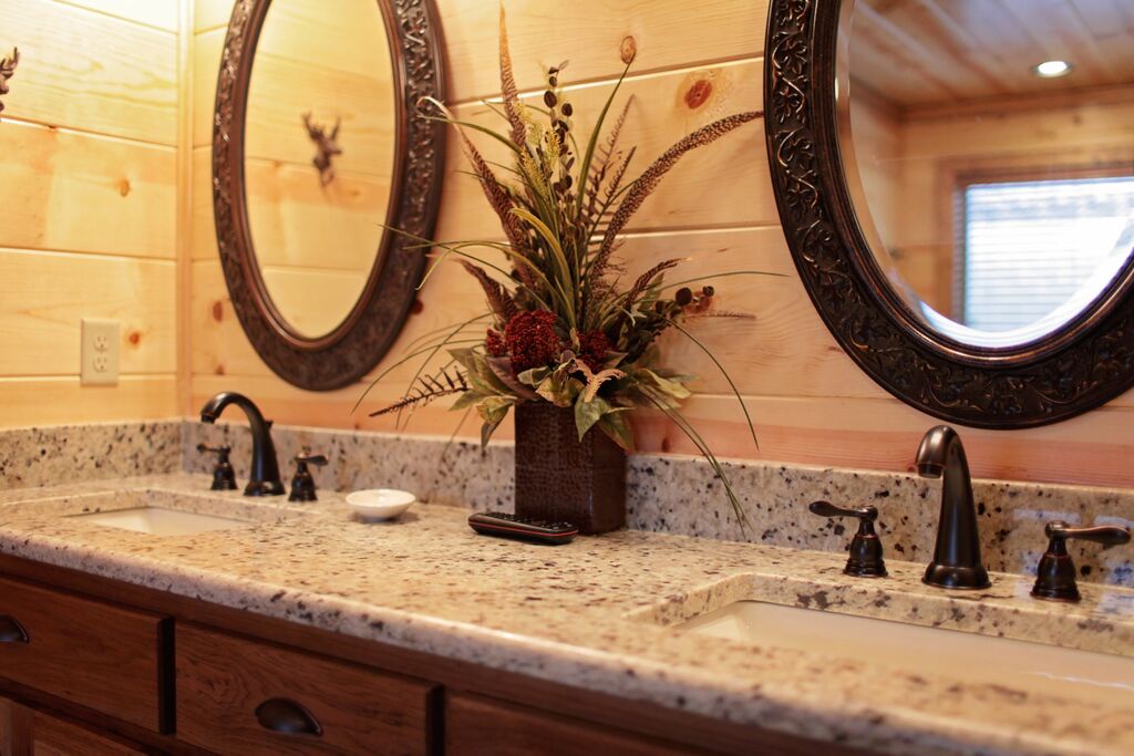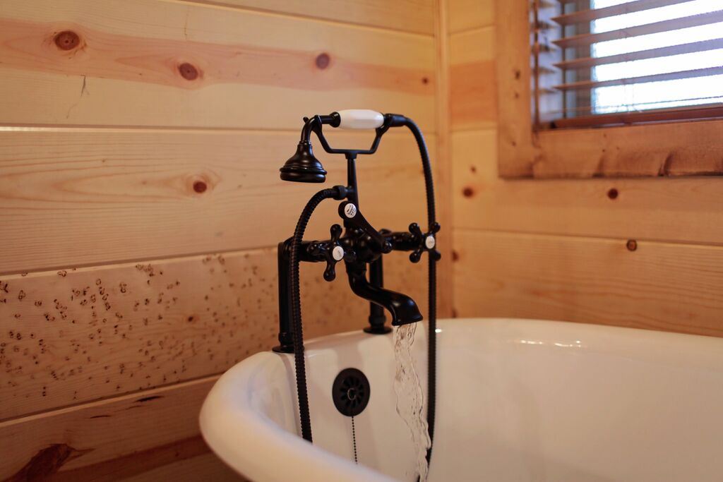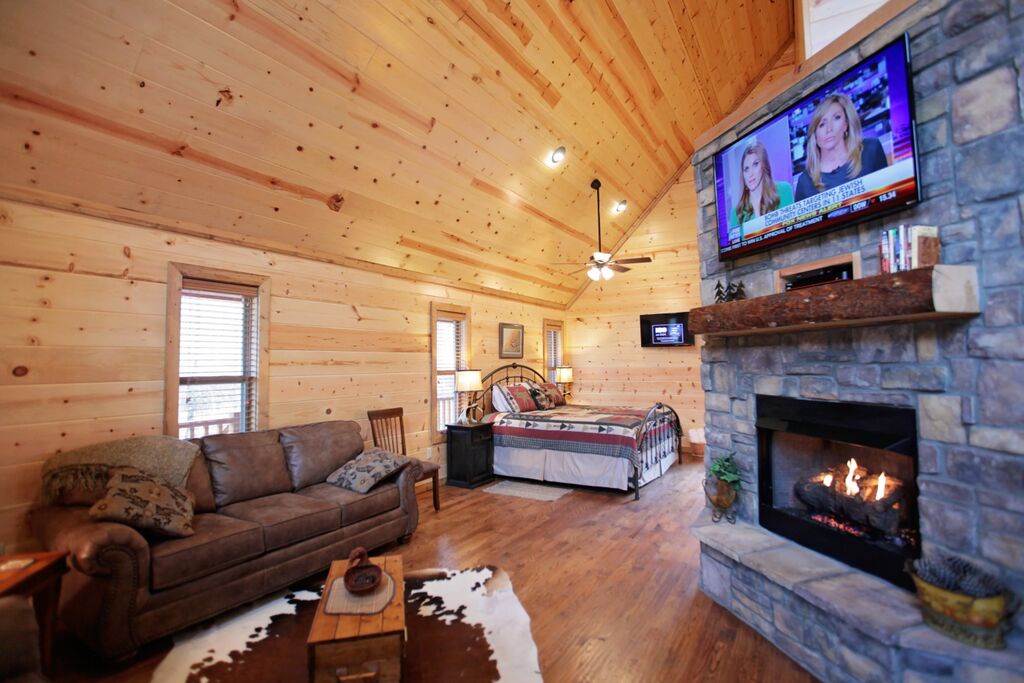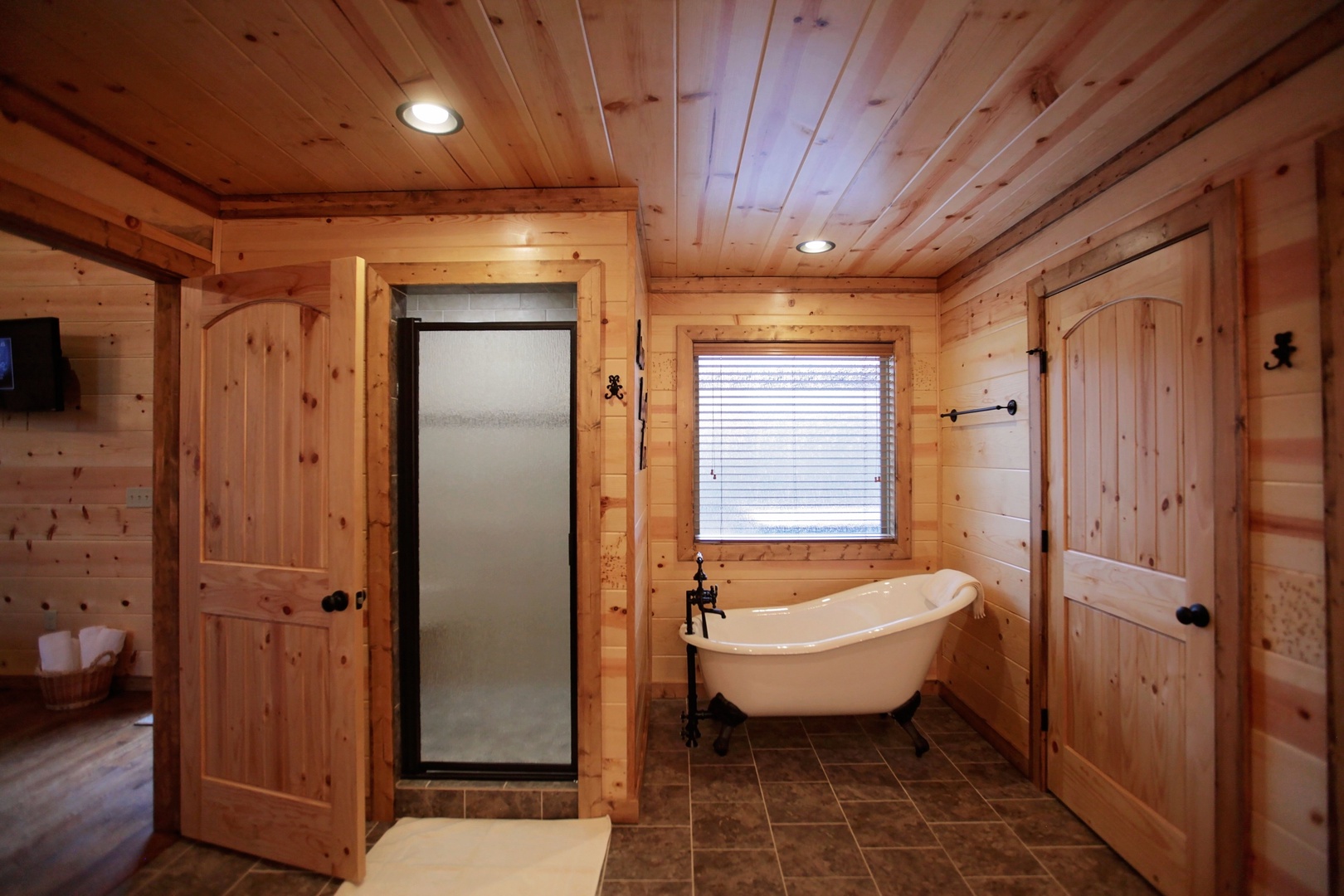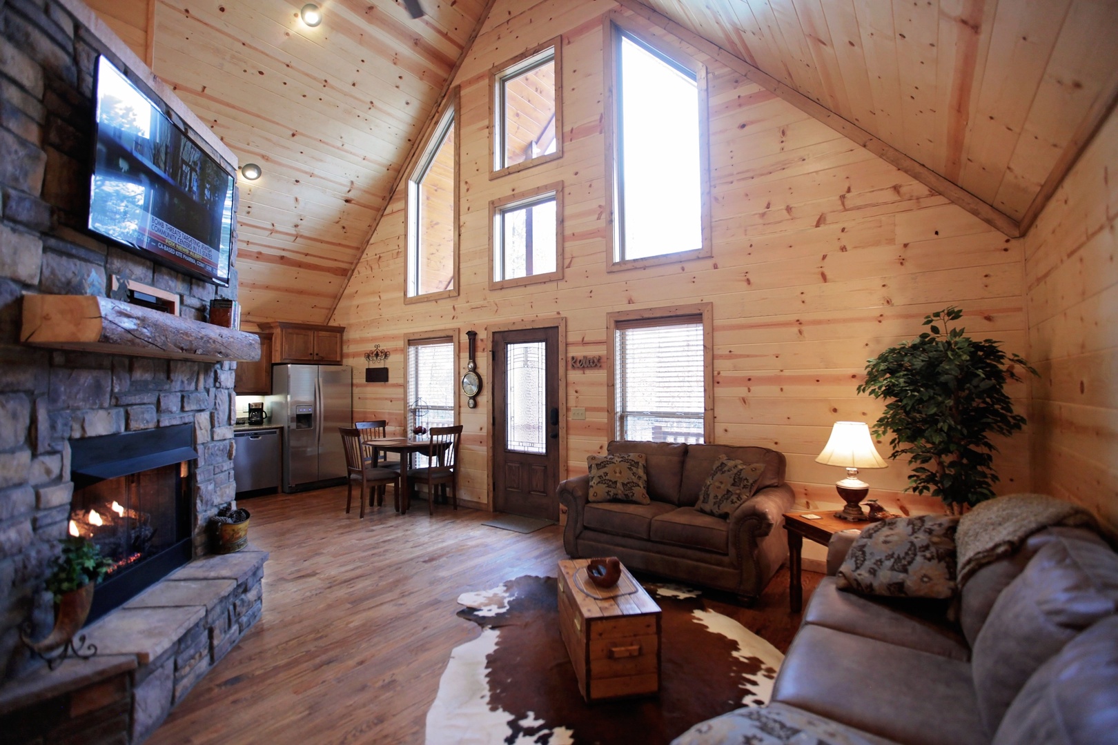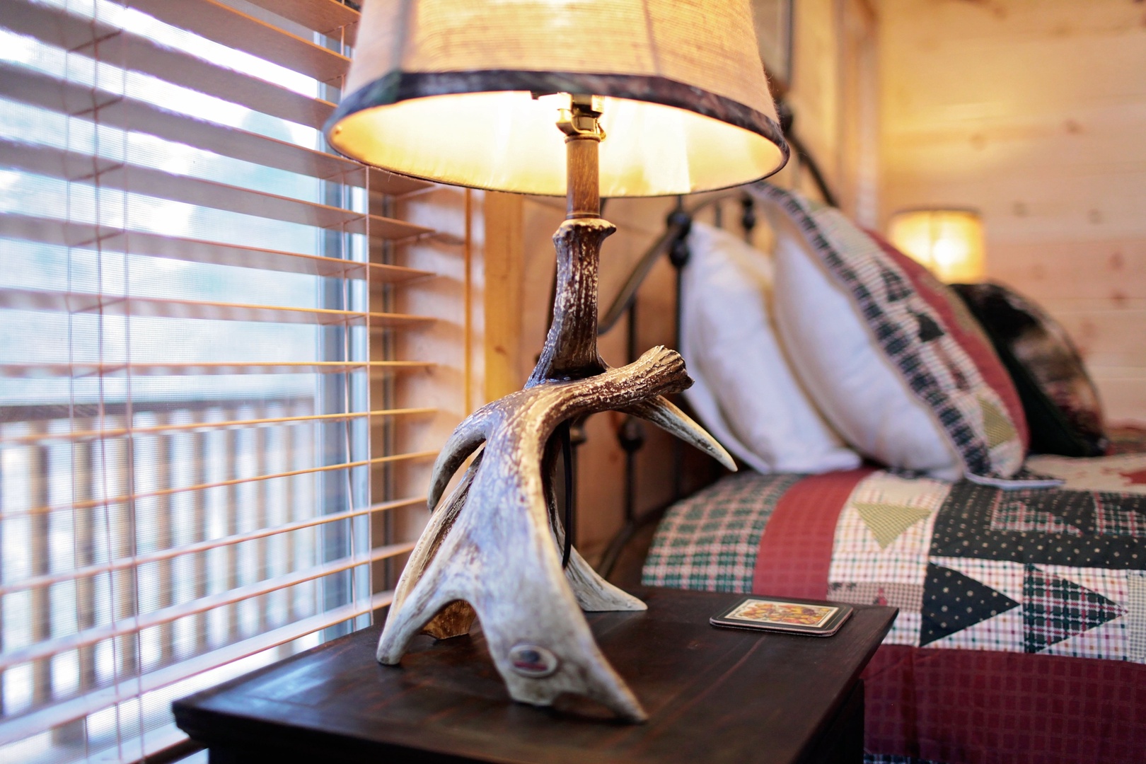 Oh, Dear is a luxurious honeymoon suite style cabin located in the Kaniatobe Trails area close to The Grateful Head, Blue Rooster, Girls Gone Wine, and more.  Oh, Dear is one bedroom suite that offers a king size bed and sleeper sofa. The large en suite bath offers a free-standing claw foot tub or walk-in tile shower for two.